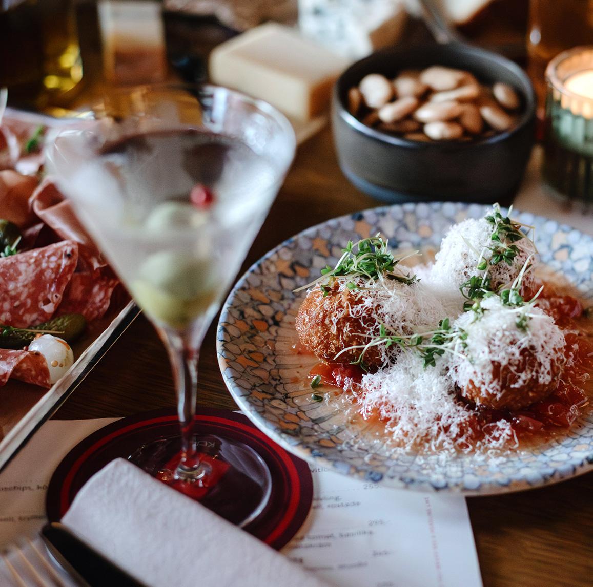 lardo, grönt äpple, mandel och brynt smör- vinaigrette